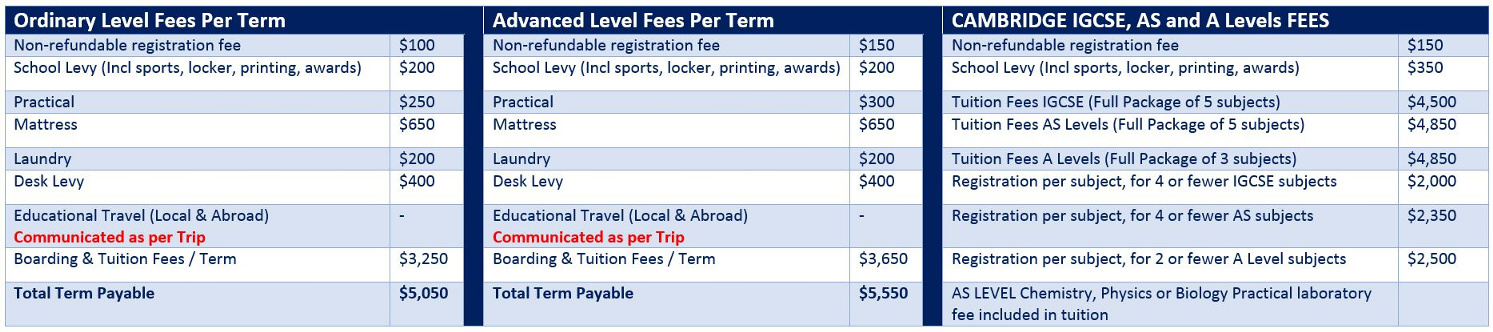 | Tuition: $2,200 | School Levy: $200 | Practical: $250 | Desk Levy: $400 |